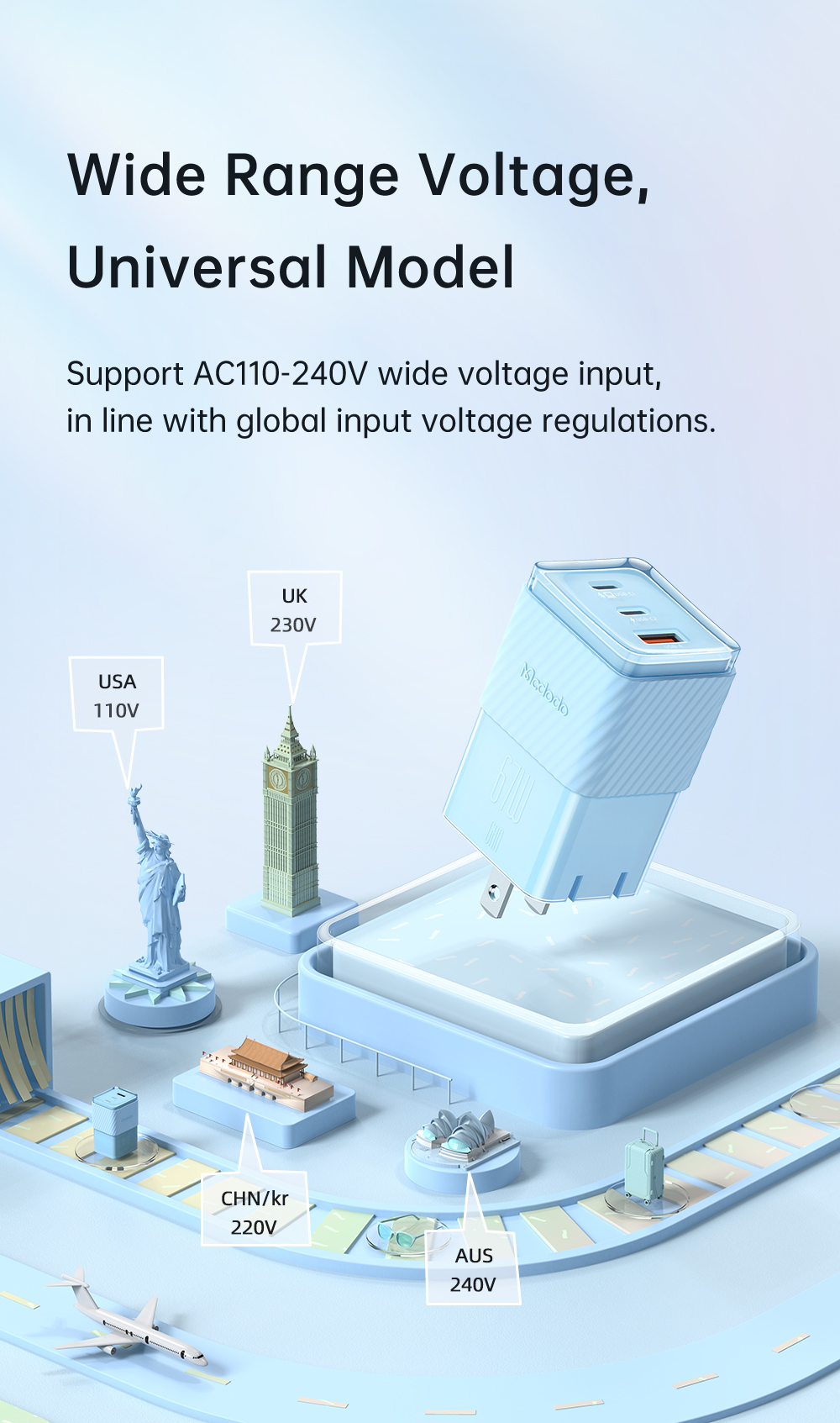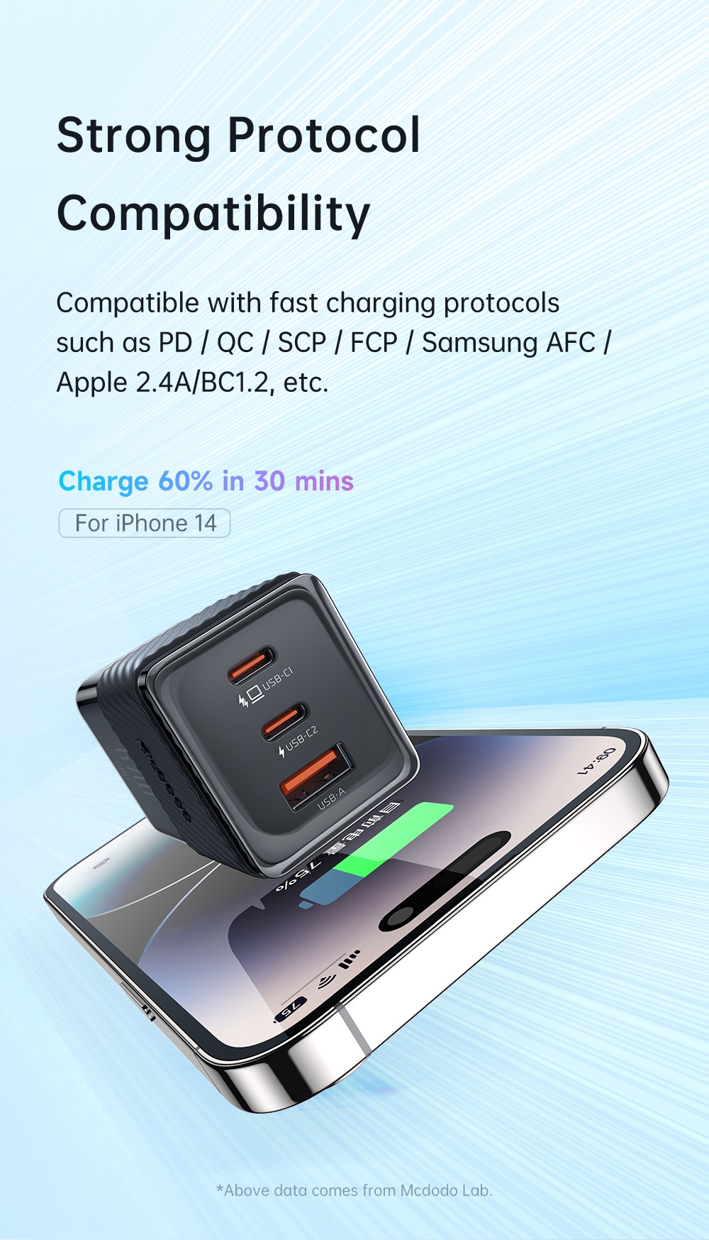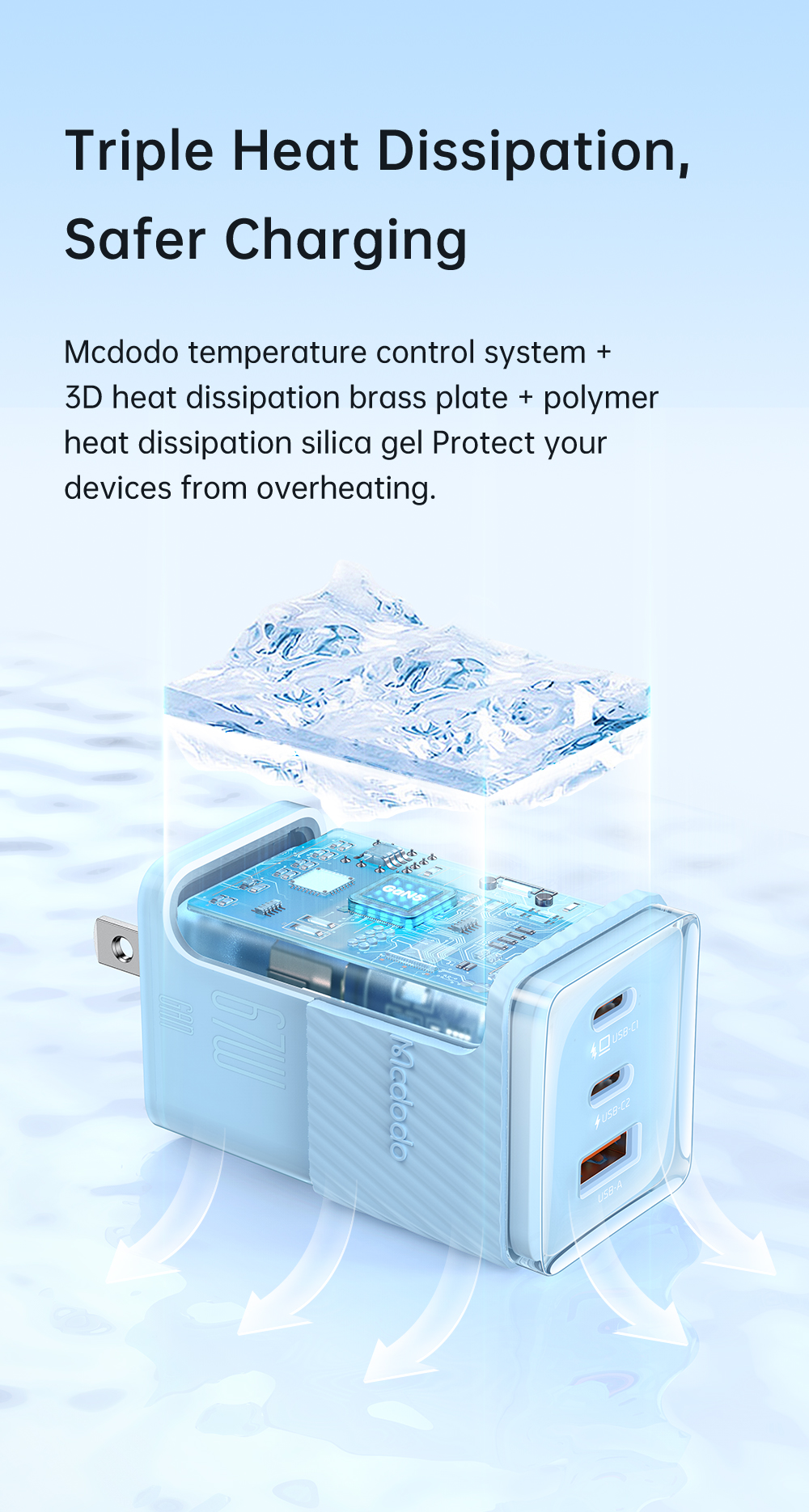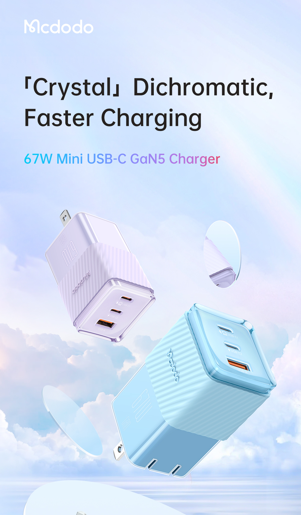 Cốc Sạc Nhanh Mcdodo 67W Dichromatic GaN 5 Mini Fast Charger (Chân cắm dẹp US, 2 TypeC + USB)